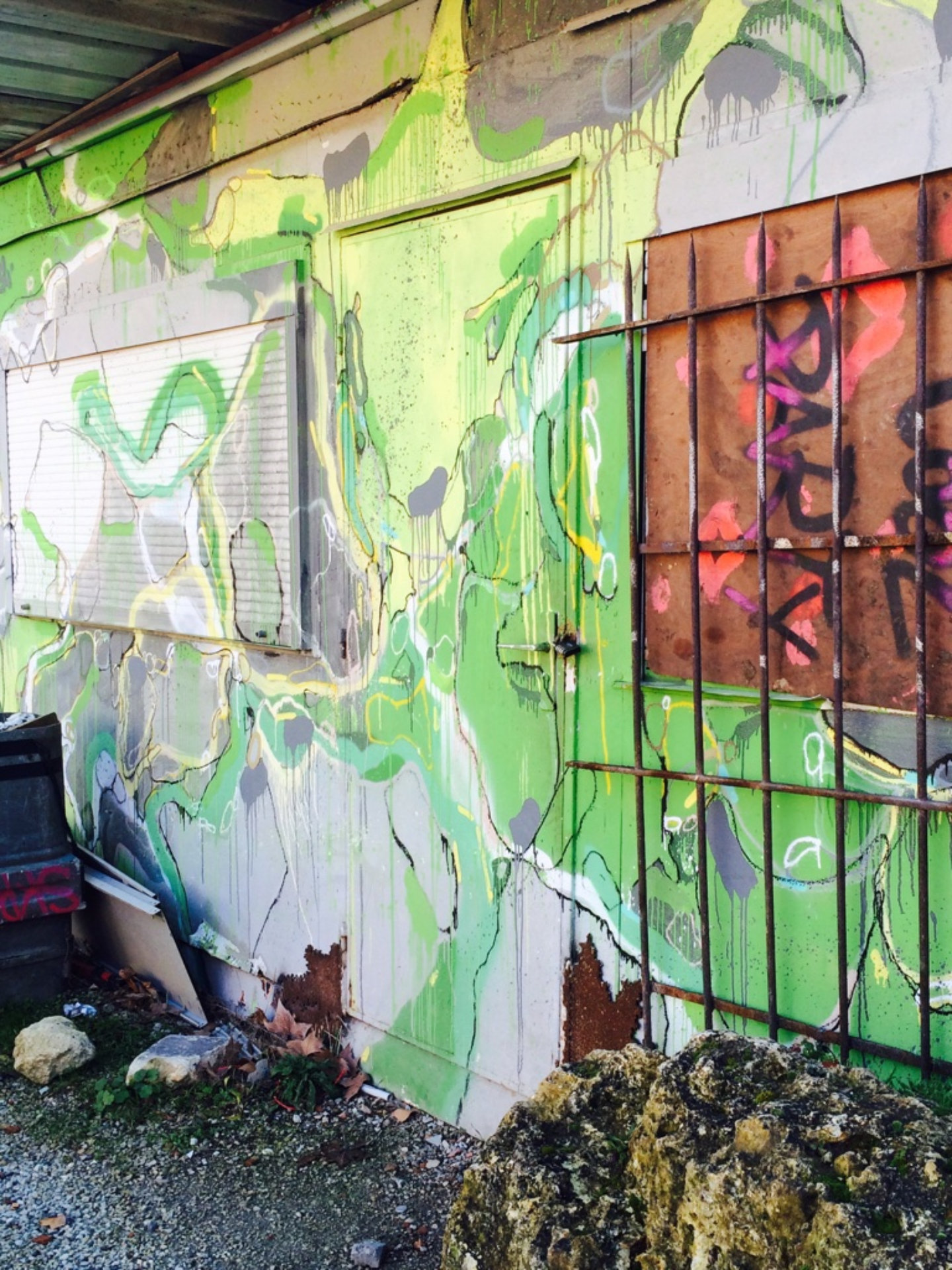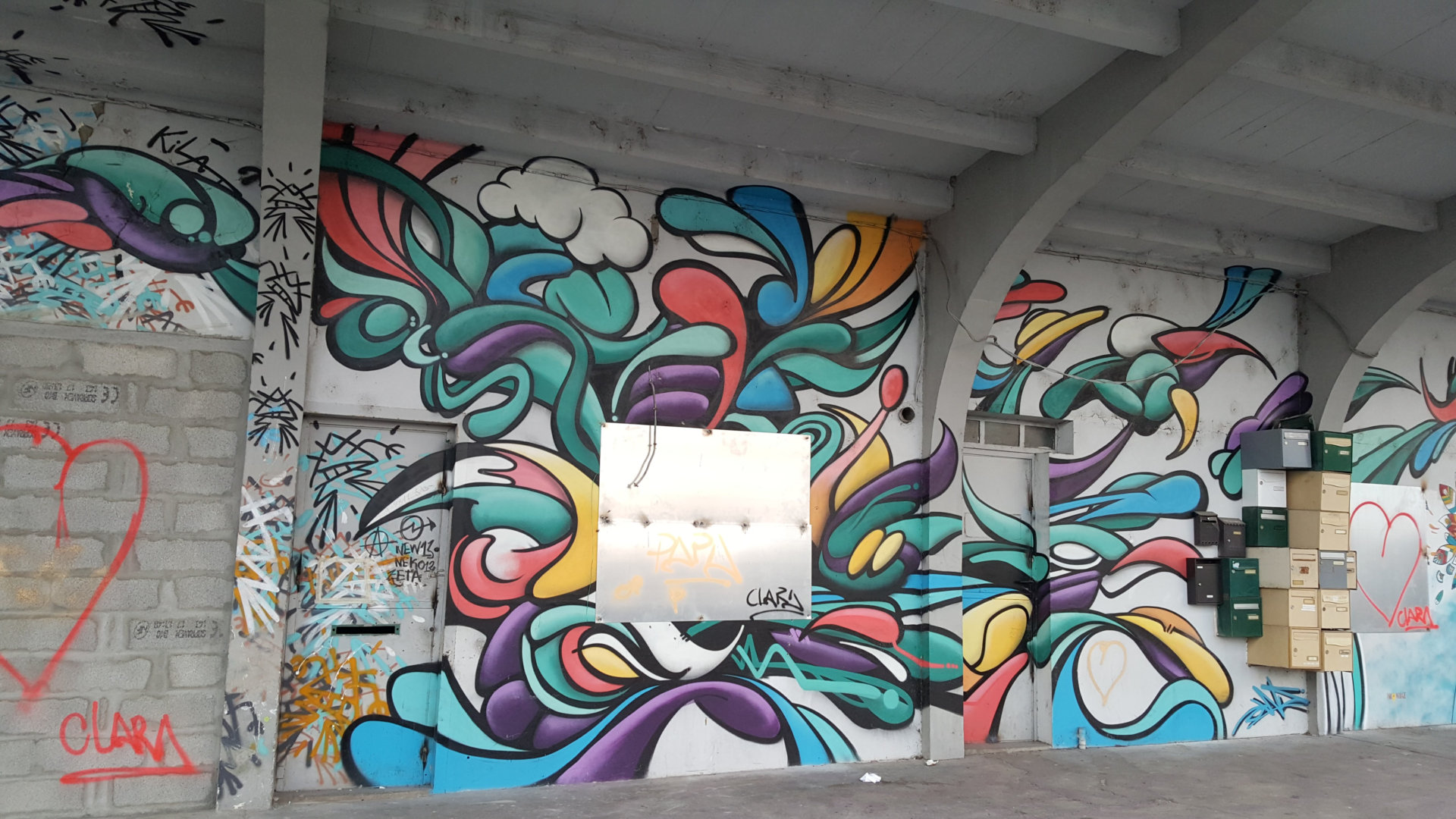 De nombreux graffitis se sont succédés au cours de cette transformation architecturale du lieu.