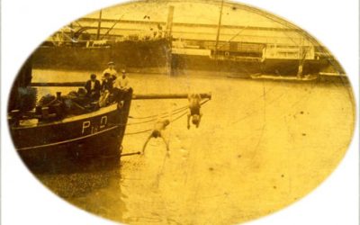 Le plongeur à l'extrémité du beaupré est le grand-père de Robert Lagadeuc. Il s'appelait André Lombarde, né en 1891. Il épousa Georgette née Suire en 1896 dont il eut une fille, Charlotte-Lucette, plus connue sous le diminutif de "Lulu", elle-même née en 1921 cité...